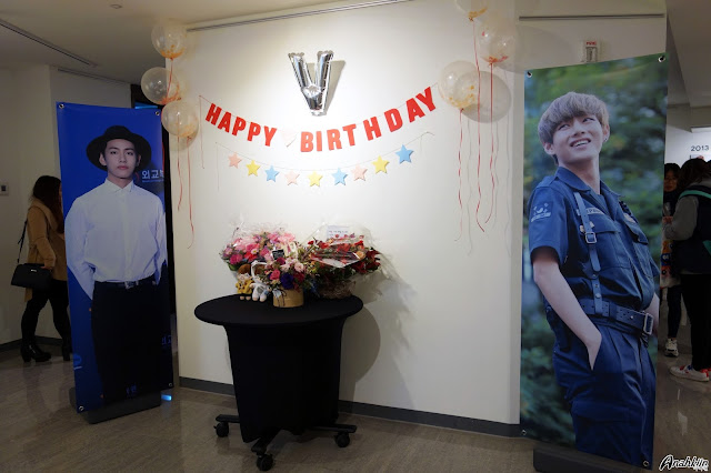 For my surprise there was also a table with a cute mail box, pens and a bunch of blank post cards meant for fans attending the event to write a lovely happy birthday card for Tae which would be delivered later.